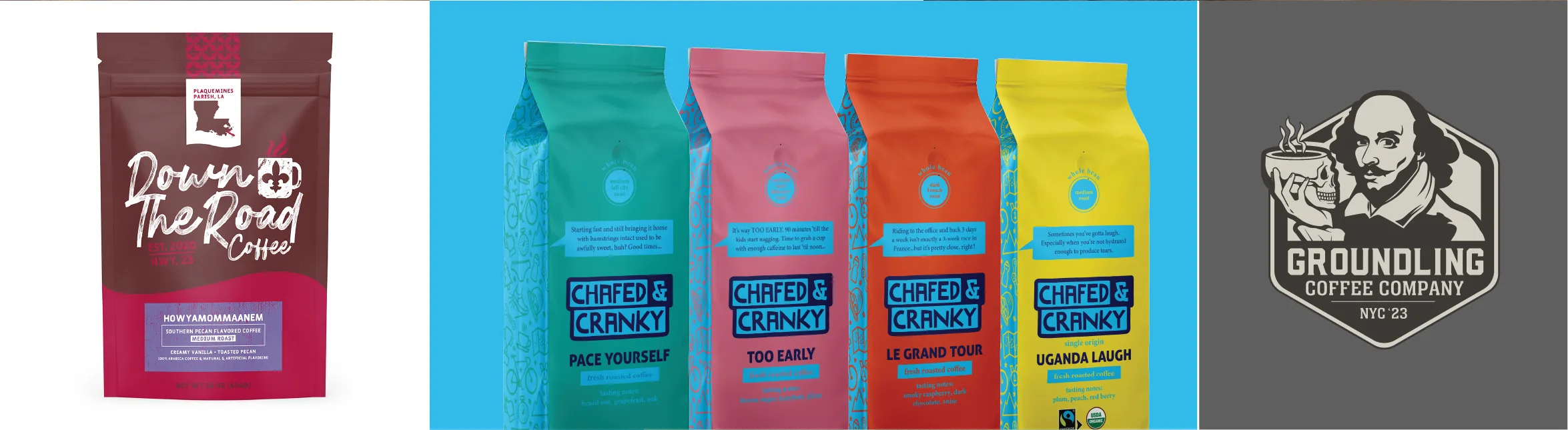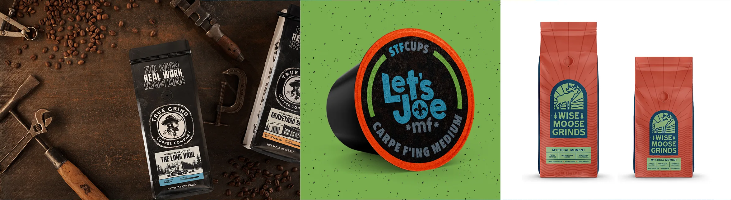 Upstart Food Brands is the definitive leader for branding work in the US coffee market! We’ve worked with more than 30 different coffee brands in the span of about 3 years. From large roasters like Westrock Coffee to old, heritage coffee producers with a 100+ year history like Thomas Coffee to smaller local/regional craft roasters like True Grind and Squirrelly Joe’s to a broad variety of drop-ship startup brands, we intimately understand every aspect of commercializing coffee products.