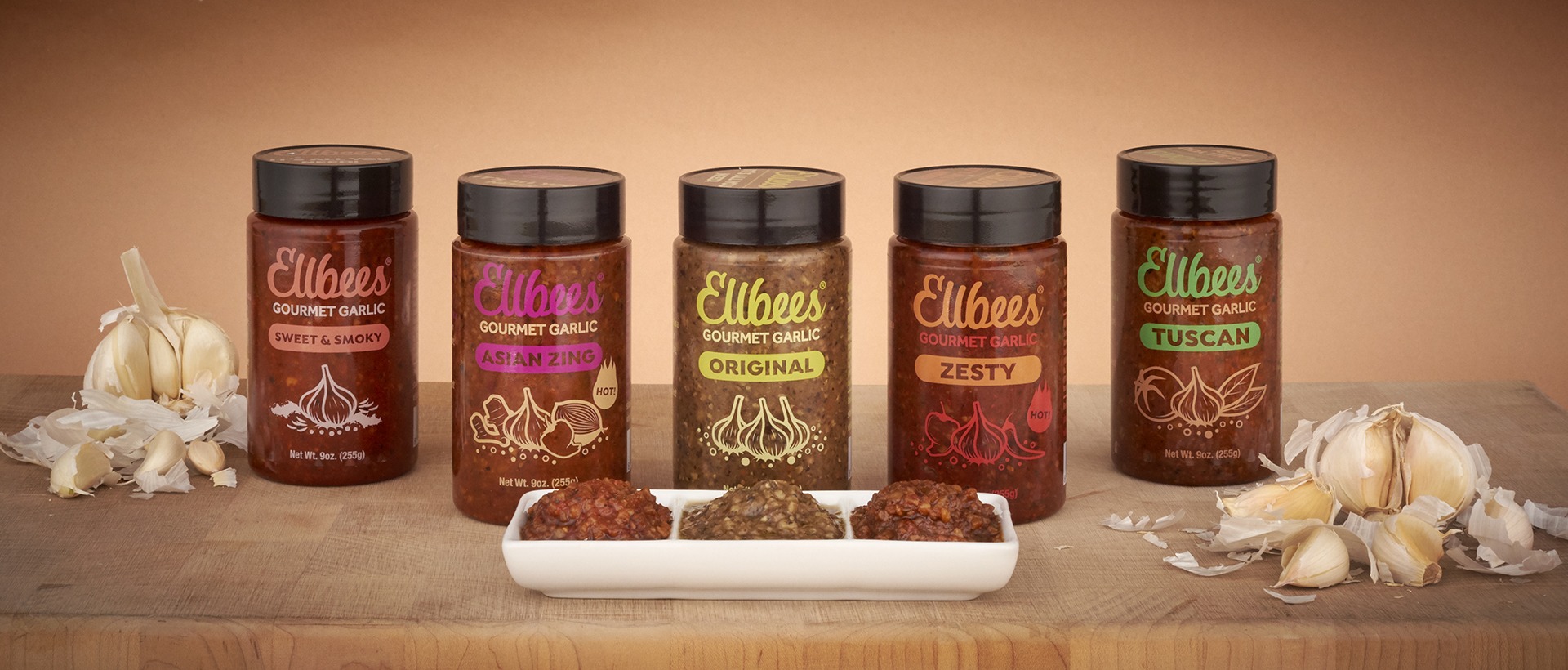 Ellbees is gourmet garlic with a twist. Combining fresh minced garlic with unique spice blends, the company has created the most convenient way to perfectly season your favorite culinary concoctions. Whether used as a rub, marinade, seasoning, condiment, or anything else your imagination can conjure, Ellbees offers the simplest way to add flavor to any dish.